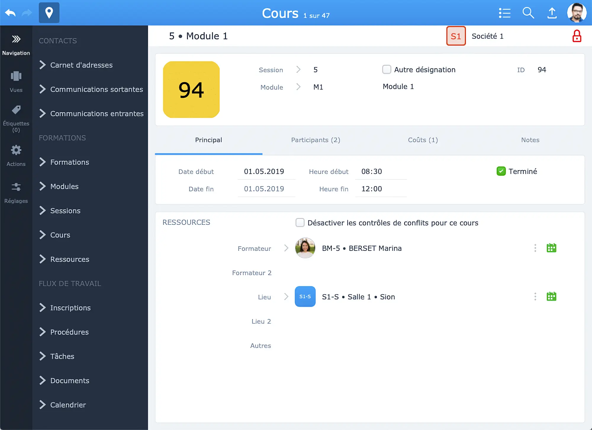 Des outils vous permettent de saisir rapidement les lieux, les formateurs, les dates et les horaires de chaque cours.