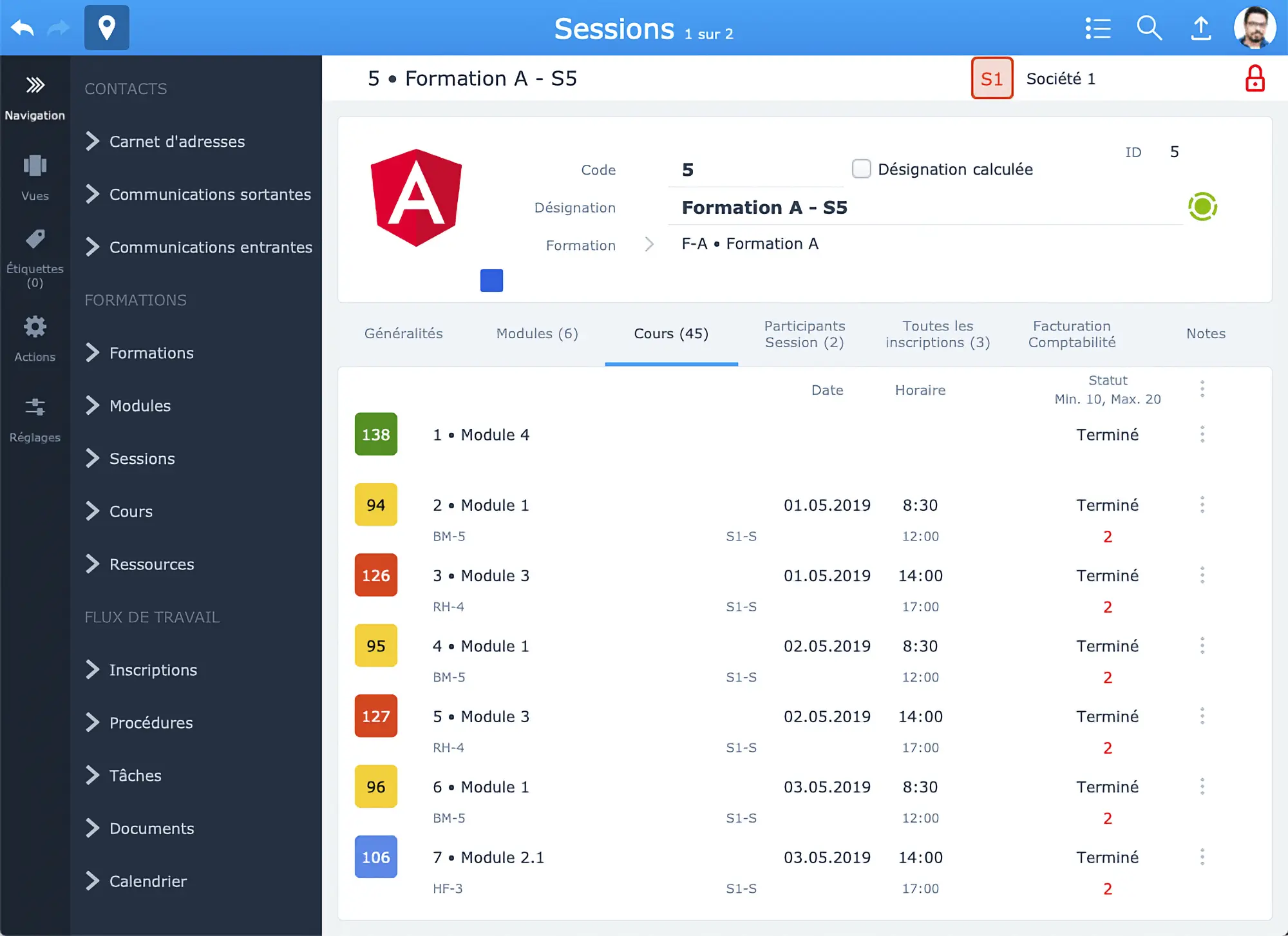 Les formations peuvent être composées de modules et être organisées selon votre plan pédagogique.